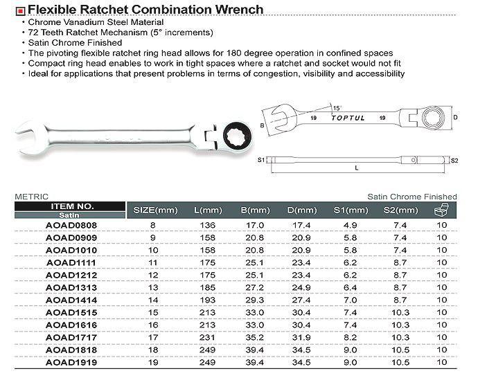 Ключ комбинированный трещоточный шарнирный TOPTUL 16мм AOAH1616