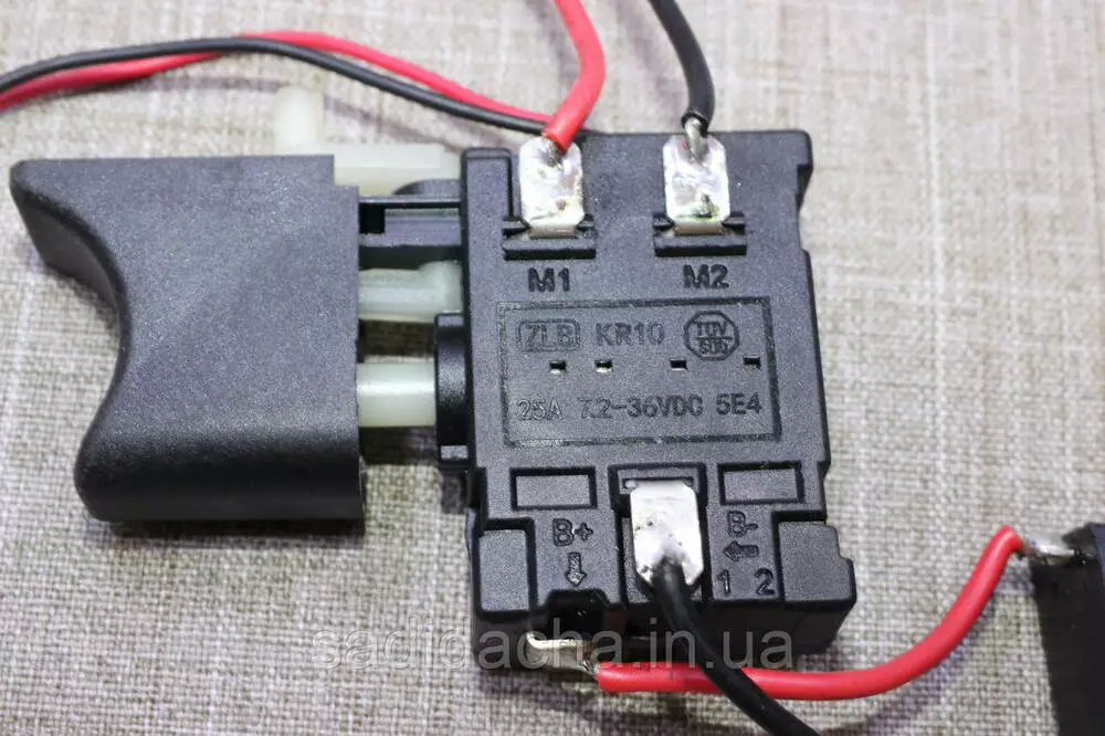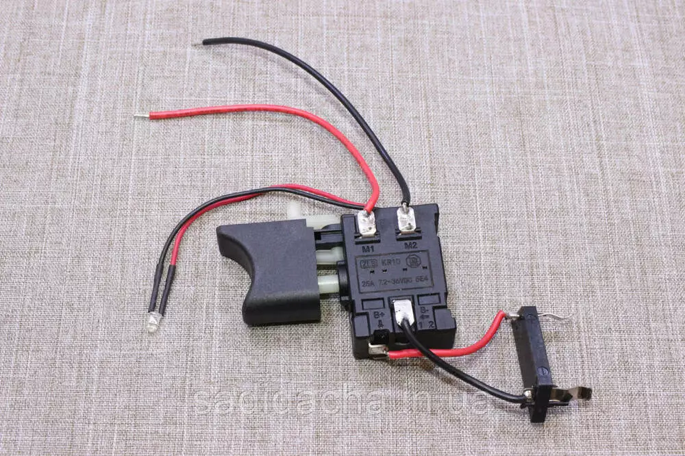 Универсальная кнопка для аккумуляторного инструмента, перфоратора c реверсом на 25 ампер, 36 вольт. Со светодиодом. Оригинальное фабричное изделие подходит к другим шуруповертам при соответствии размеров.