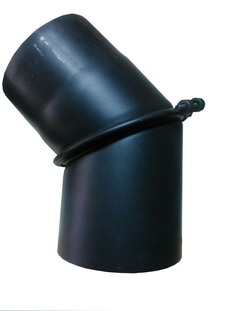 Колено используется для подключения каминных топок и печей к дымоходу. Секции колена надежно фиксируются с помощью специальных зажимов. Материал: низколегированная сталь. Изделие окрашено черной термостойкой краской, толщина металла 2 мм.