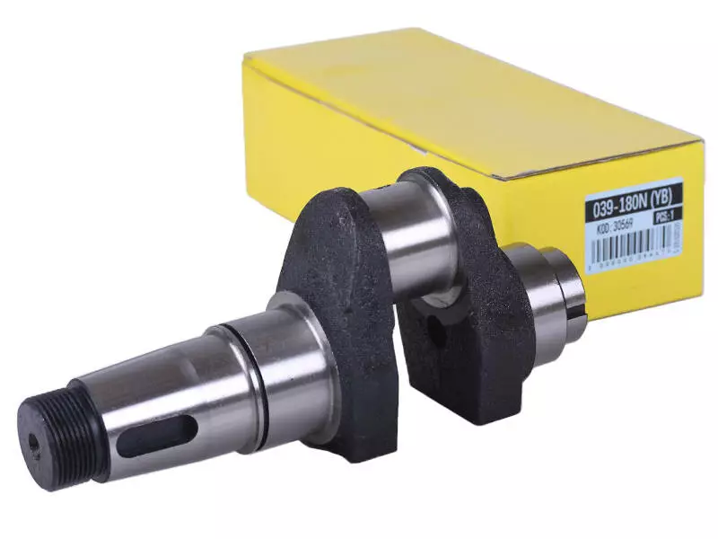 Коленвал голый ТАТА 180N Y-BOX — это элемент двигателя мотоблока, составляет узел деталей в случае составного вала. Коленвал имеет шейки для крепления шатунов, за счет чего идет преобразование из усилий, в крутящий момент. Модель 180N Y-BOX подходит на дизельные двигатели мотоблоков и мототракторов мощностью 8 л.с. с водяным охлаждением. ¶Строение коленвала ТАТА 180N Y-BOX:¶• коренная шейка — опора вала, лежащая в коренном подшипнике, размещенном в картере двигателя;¶• шатунная шейка — опора, при помощи которой вал связывается с шатунами (для смазки шатунных подшипников имеются масляные каналы);¶• щеки — связывают коренные и шатунные шейки;¶• передняя выходная часть вала (носок) — часть вала, на которой крепится зубчатое колесо или шкив отбора мощности для привода газораспределительного механизма (ГРМ) и различных вспомогательных узлов, систем и агрегатов;¶• задняя выходная часть вала (хвостовик) — часть вала, соединяющаяся с маховиком или массивной шестерней отбора основной части мощности;¶• противовесы — обеспечивают разгрузку коренных подшипников от центробежных сил инерции первого порядка неуравновешенных масс кривошипа и нижней части шатуна.¶Коленвал голый ТАТА 180N Y-BOX имеет общую длину 230 мм. Диаметр шейки под шатун равен 45 мм. Посадочный диаметр под подшипники составляет 50 мм. Резьба под крепление противовесов М10. Вес (нетто/брутто) детали составляет 3470/3600 гр.¶Интернет-магазин предлагает купить коленвал голый ТАТА 180N Y-BOX по выгодной цене. Гарантия на модель 180N Y-BOX ТАТА составляет 3 месяца.¶