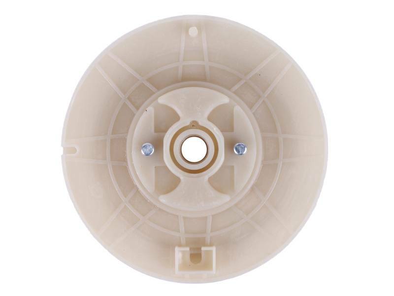 Колесо стартера ТАТА на дизельный двигатель 186F генератора GN 5 KW - элемент системы ручного запуска силового агрегата. Данный вид стартера получил широкое распространение, благодаря своей простоте и энергонезависимости. Деталь представляет собой катушку для намотки стартового шнура. Сложная конструкция центральной части обусловлена необходимостью крепления специального механизма для сцепления со стаканом стартера. Деталь изготовлена из прочного пластика методом литья под давлением. Для обеспечения продолжительной работы необходимо избегать высоких динамических нагрузок на шнур при запуске мотора.