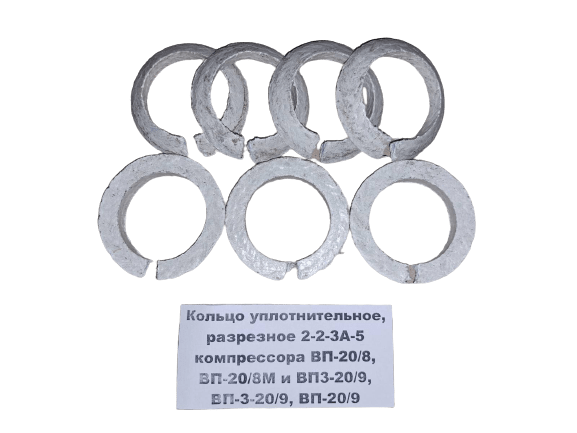 Кольцо уплотнительное — разрезное 2-2-3А-5, материал АФТ8х8, для компрессоров ВП-20/8, ВП-20/8М и ВП-20/9, ВП3-20/9, ВП-3-20/9 Москвского компрессорного завода «БОРЕЦ».