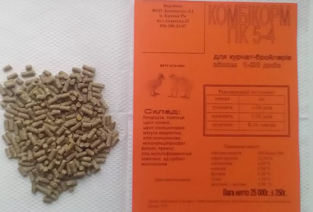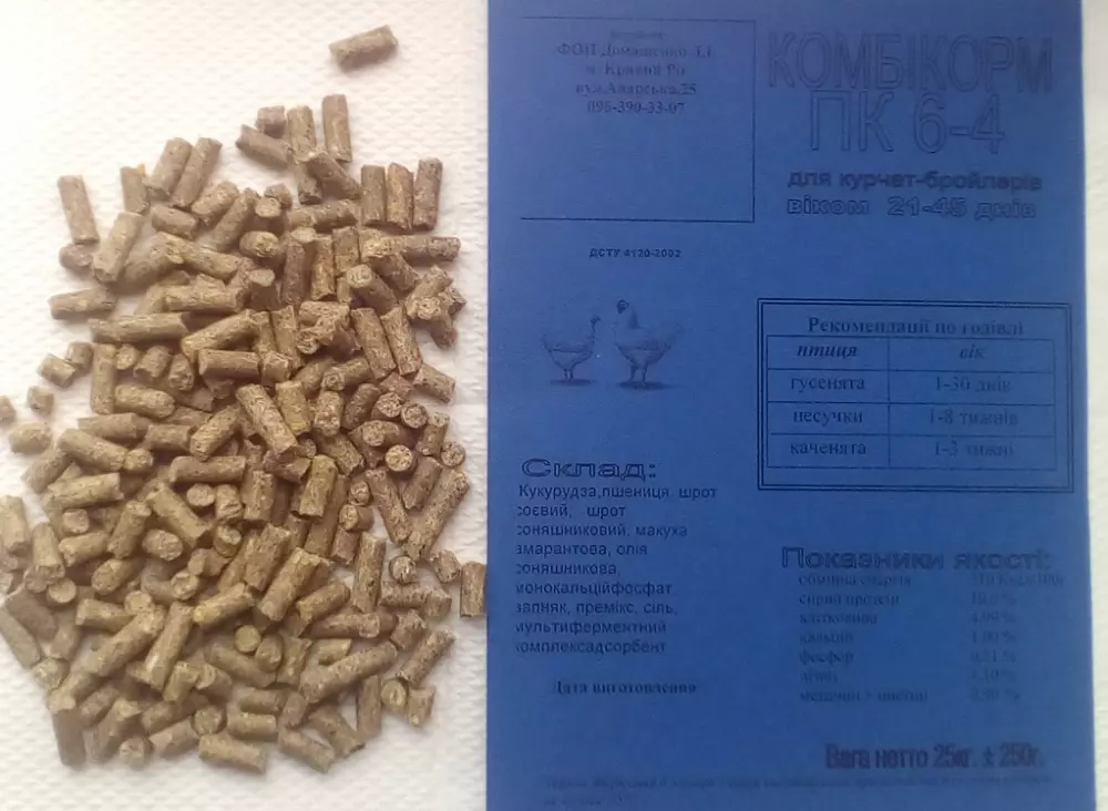 Состав корма: пшеница, кукуруза, шрот соевый, шрот подсолнечника, жмых амарантовый, соль, монокальцийфосфат, известняк, целюлозолитический фермент, фитазный комплекс, премикс,