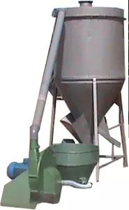 Комплект оборудования состоящий из приемного бункера, измельчителя зерна, вертикального смесителя сухих кормов, системы электронного взвешивания. Производительность измельчителя – 1 тонна в час, объем смесителя - 1 куб. м, мощность электродвигателей – 7,5 + 4 кВт.