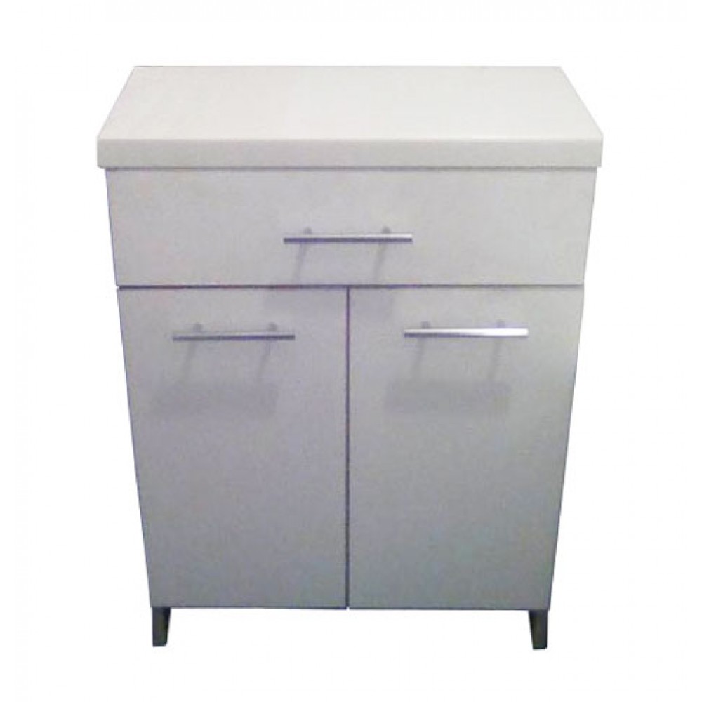 Комод со столешницей белого цвета идеально установить прямо возле ванны. Ведь он изготовлен из пластика. Ему не страшна стихия воды, как бы сильно Вы не плескались в ванной. Ему все ни по чем. Аккуратненький, с верхним выдвижным ящиком, легок в уборке. В верхний ящик можно сложить мелкие бытовые принадлежности или разные аксессуары для женской красоты. Практичным хозяевам нужна практичная, надежная, долговечная мебель.В ванной комнате наиболее высокой процент влажности, поэтому мебель нужно выбирать из влагостойкого материала. Мебель Mikola-M  изготовляется именно из такого сырья