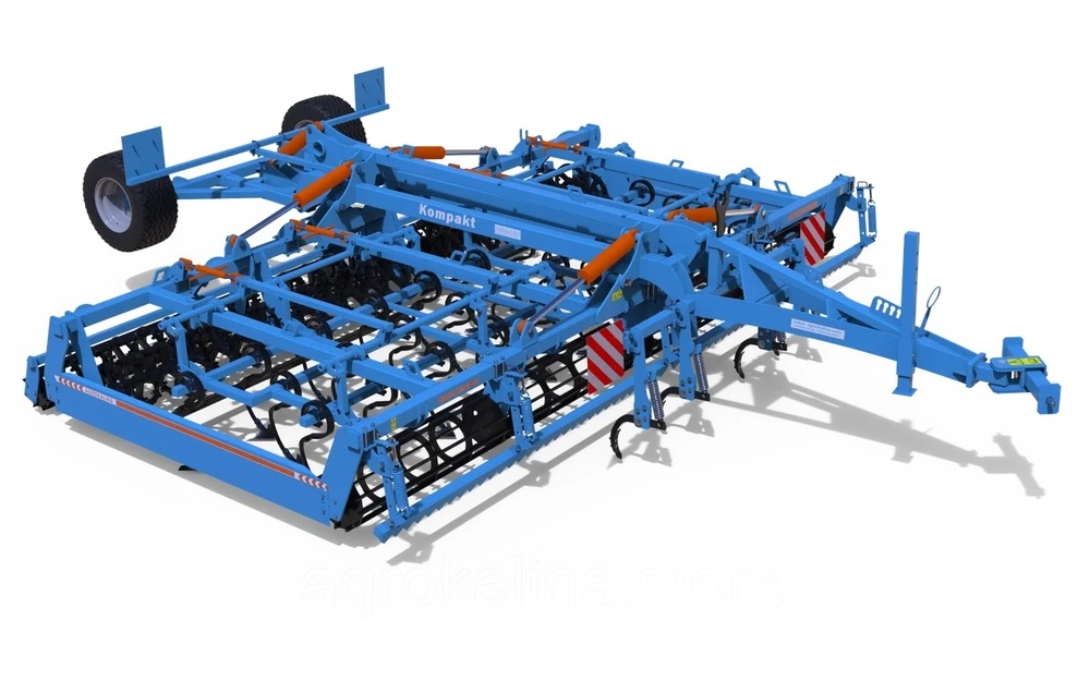 Гидравлически складывается для транспортировки до 3 м (для 9-метрового агрегата - до 4,6 м) .Версии с шириной захвата 3 и 4 метра исполнении без составления в транспортное положение.