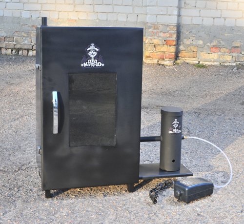 В комплект входит дымогенератор для холодного копчения и коптильный шкаф.