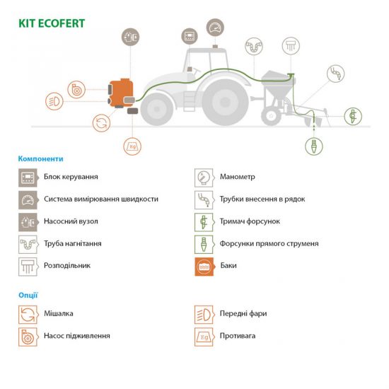 Комплект ECOFERT разработан для максимального использования преимуществ метода сплошной струи, который обычно применяется для жидкого удобрения или бактериального раствора.