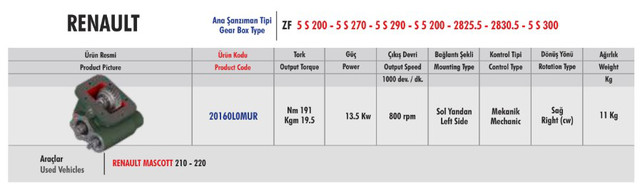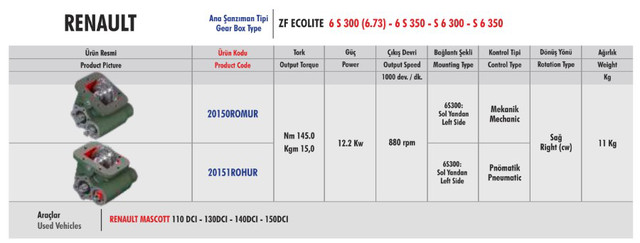ZF ECOLITE 6 S 300 (6.73) - 6 S 350 - S 6 300 - S 6 350 – применяемость RENAULT MASCOTT 110 DCI - 130DCI - 140DCI - 150DCI