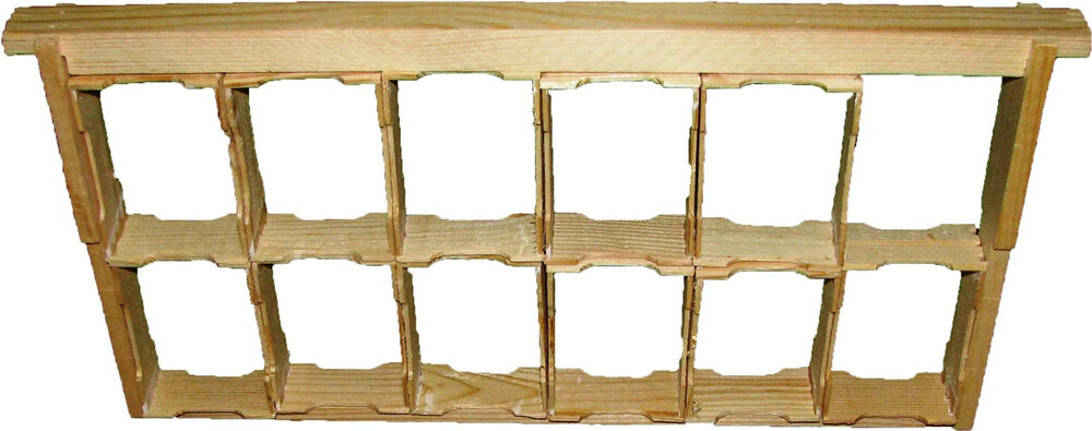В комплект входит 12 рамок для сотового меда в сборе, каждая из которых вмещает примерно 180 грамм меда, а также сбитая рамка размером 435Х230 мм.