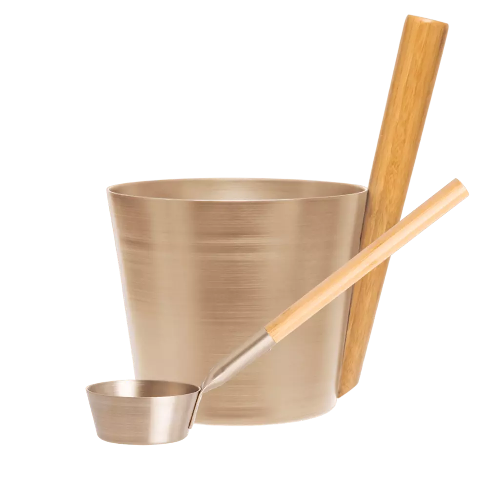 Комплект Шайка + черпак для бани Rento 5 л шампань – это идеальное сочетание стиля, функциональности и качества для вашей сауны или бани. Качественная шайка, сделанная из прочного материала, является нужным элементом хоть какого саунного места. Эта модель производится финской компанией-производителем Rento с использованием высококачественных и износостойких материалов, таких как анодированный алюминий и бамбук.
