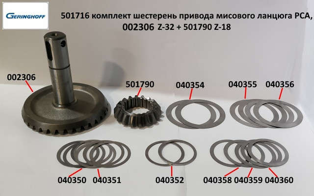 Комплект шестерень привода мисового ланцюга Geringhoff PCA, 501716 , 002360 Z-32 + 501790 Z-18