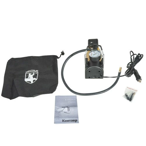 Компресор АК-15035А забезпечений шлангом з якісним накінечником, що накручується на ніпель колеса і точним манометром.