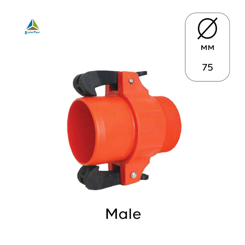 Коннектор пластиковый 75 мм с пластиковой резьбой 2 1/2" male-папа