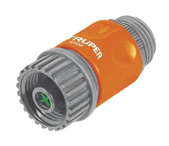 используется в системах полива для присоединения шланга к коннектору. Выполнен из высококачественного пластика, практичен и удобен в применении. Устройство подходит для шлангов размера 3/4 дюйма. Коннектор упакован в блистер.