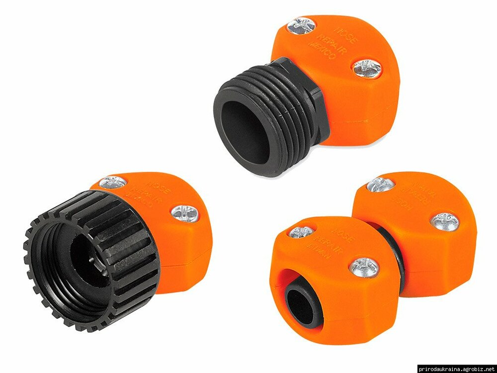 Коннекторы соединительные  и ремонтный  ремонтный для шланга   . Он используется в системах полива для присоединения шланга к коннектору. Выполнен из высококачественного пластика, практичен и удобен в применении. Устройство подходит для шлангов размера 5/8-3/4 дюйма. Коннектор упакован в блистер.