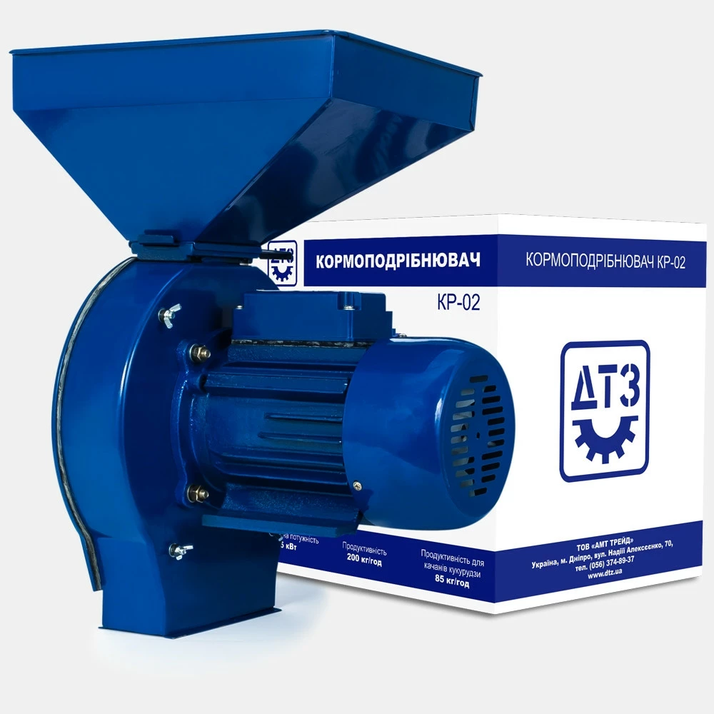 Кормоподрібнювач побутовий ДТЗ КР-02 призначений для подрібнення зернових, качанів, стебел кукурудзи під час приготування кормів.