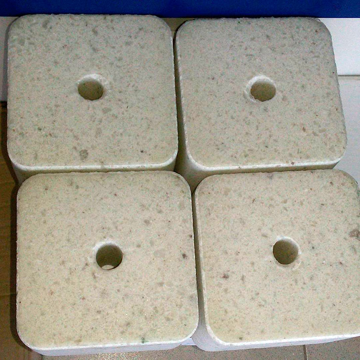 • С целью подкормки животных и применяют натуральную каменную соль: в монолитных кусках весом от 1 кг до 5 кг; вырезанную из природной монолитной породы, а это солеблоки – лизунцы массой 32 кг; спрессованный брикет – лизунец  массой 5 кг, сохраняющие продолжительный промежуток времени свою энергетическую ценность и целостность не требуя при этом дополнительных затрат на их применение.