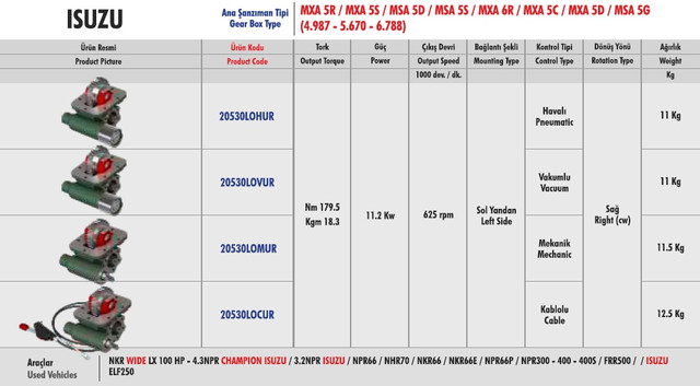 КОМ Isuzu MXA 5R\PTO Isuzu MXA 5R подходит для коробки передач: