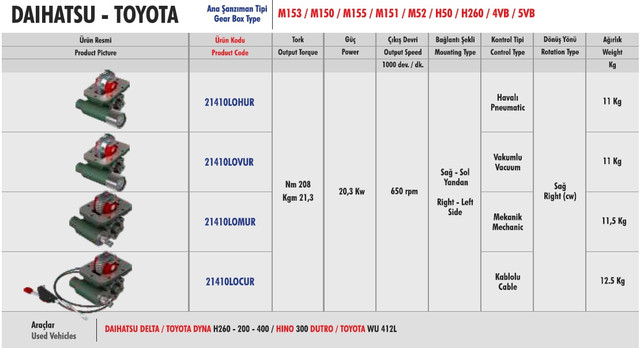 Коробка отбора мощности (КОМ) на Daihatsu\Power take off (PTO) Daihatsu-Toyota M153/ М150/ М155
