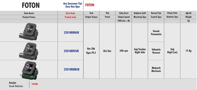 В наличии также коробка отбора мощности на IsuzuМАЗ, DAF, Iveco, Scania, Renault, Mersedes Benz, MAN и прочие марки отечественных и зарубежных тягачей, спецтехники, строительной техники и техники коммунальных служб.
