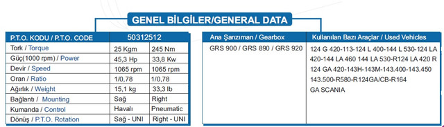 Коробка отбора мощности Scania GRS 900 Uni\Power take off (PTO) Scania GRS 900 Uni подходит для коробки передач: