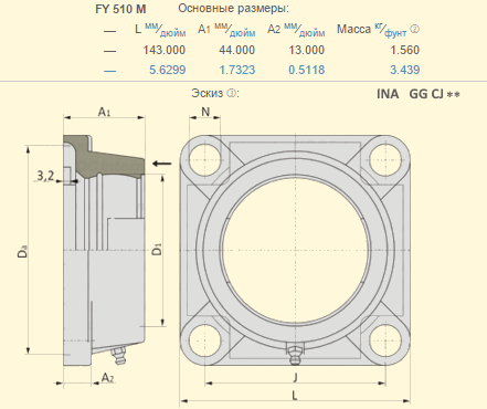Корпус подшипника Lemken 3199508 аналог FY510M, GG CJ10