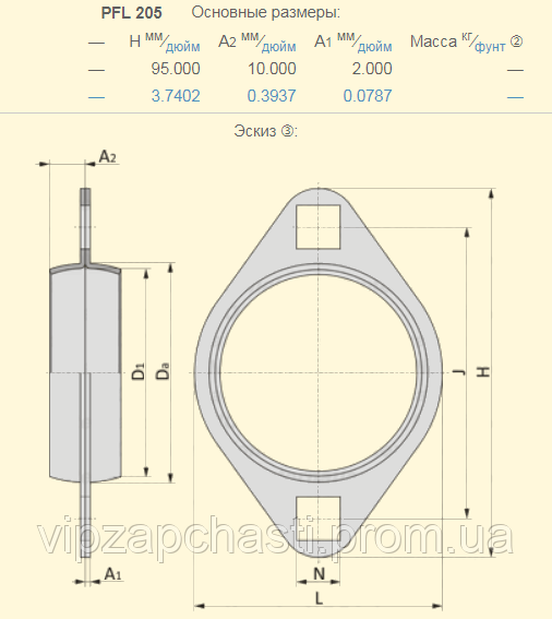 Корпус підшипника Case 380288A1 аналог PF 52, PF 205, FLAN 52 MSB