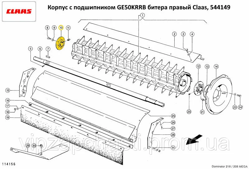 Корпус с подшипником (GE50KRRB) битера правый Claas, 544149