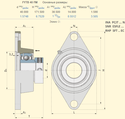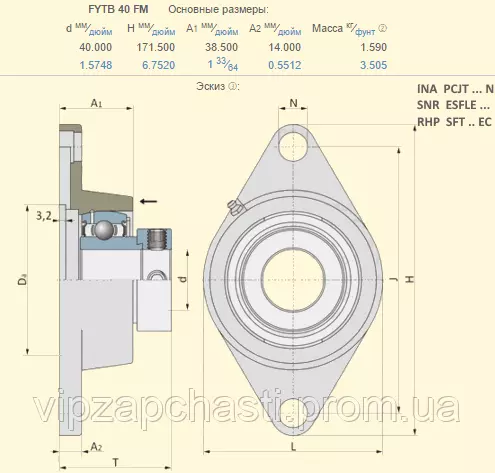 Корпус с подшипником Lemken 3199355 аналог FYTB40FM