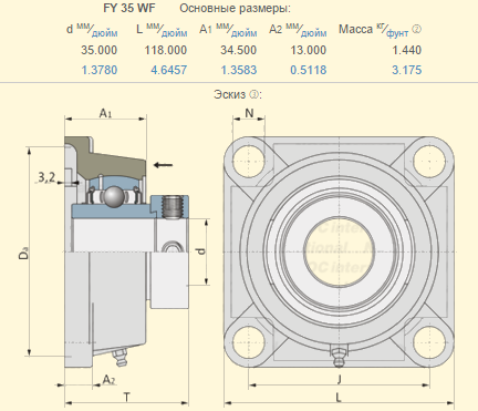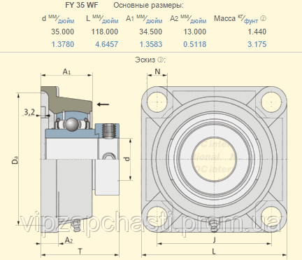 Корпус с подшипником Lemken 3199365 аналог FY35WMM