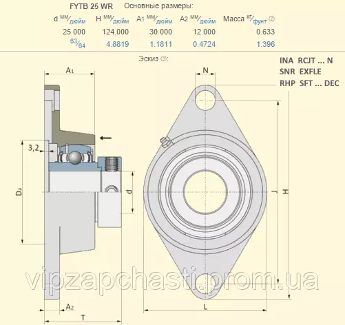 Корпус с подшипником Lemken 3199367 аналог FYTB25WR, RCJT25