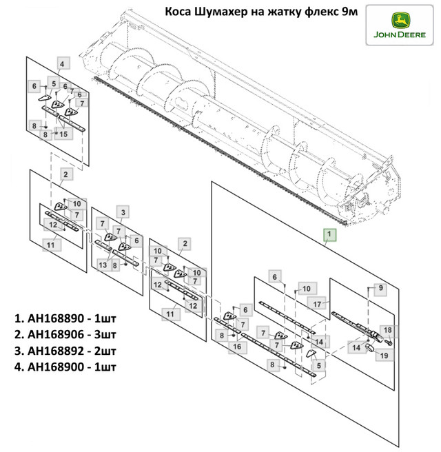 Коса жатки (середня частина) John Deere 630F SCH AH168892
