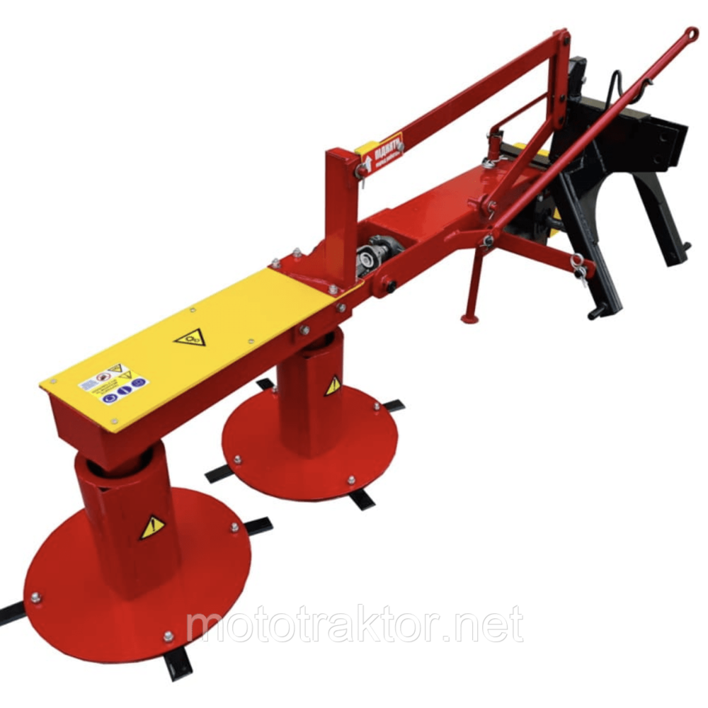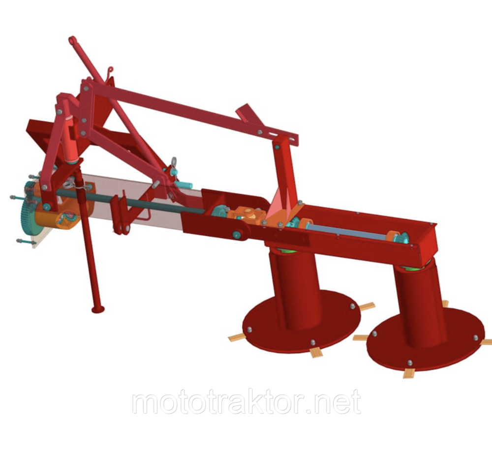 В разгар лета трава косится при помощи острых ножей на роторе, а их (2х4) 8 штук. Косилку размещают сзади водителя. Перед началом кошения позаботьтесь, чтобы поле было без камней. На данный момент одна из лучшых косилок для мототрактора.