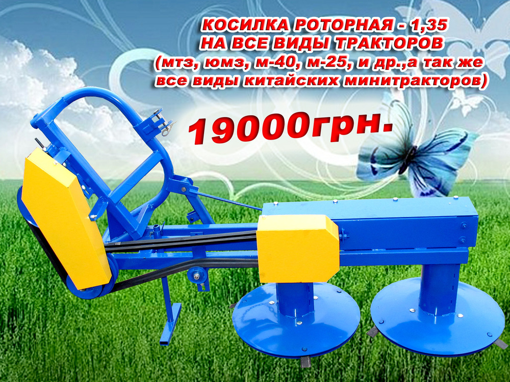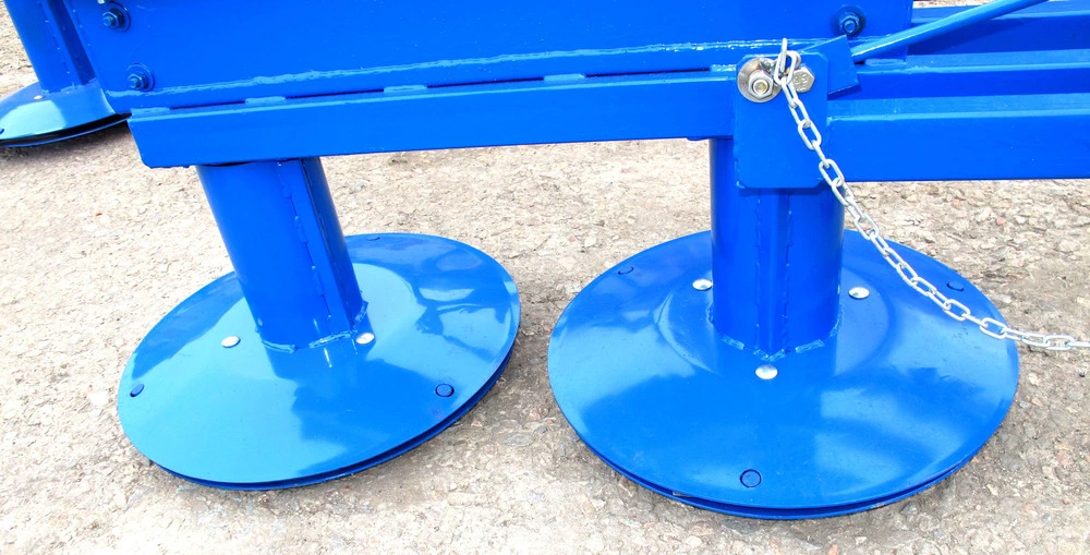 - однородное скашивание по всей ширине захватывания косилки (1,35 м) осуществляют два диска с шестью острыми ножами навесного типа;