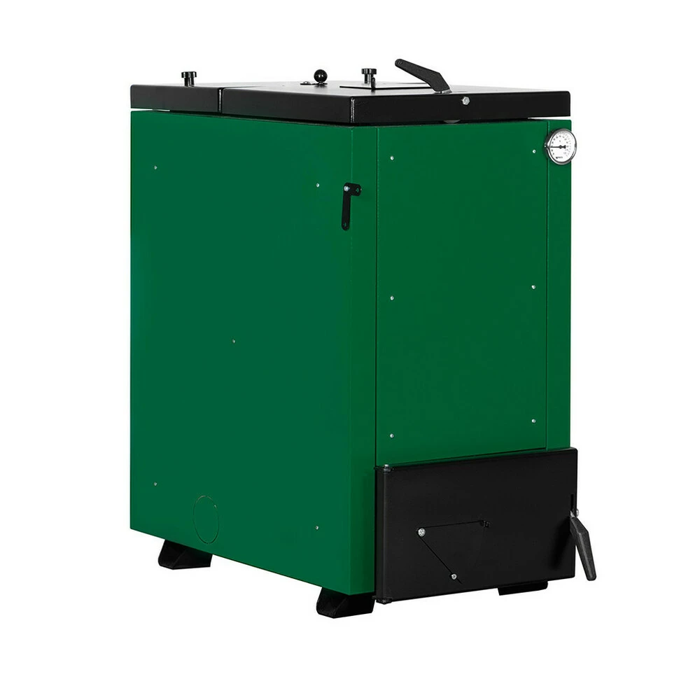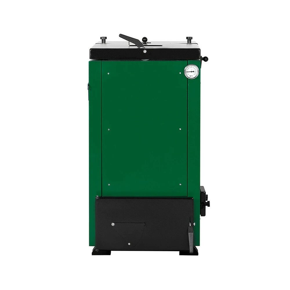 Котел Макситерм шахтного типа мощностью 12 кВт - это котел длительного горения. Топка котла вытянута по вертикали и по консрукции напоминает шахту, отсюда и название котел – шахтного типа. Благодаря способу подачи воздуха в камеру сгорания, воспламеняется не весь объем топки, а только нижний слой. Реализуется принцип слоевого нижнего горения. Котлы шахтного типа Макситерм работают на всех видах твердого топлива.