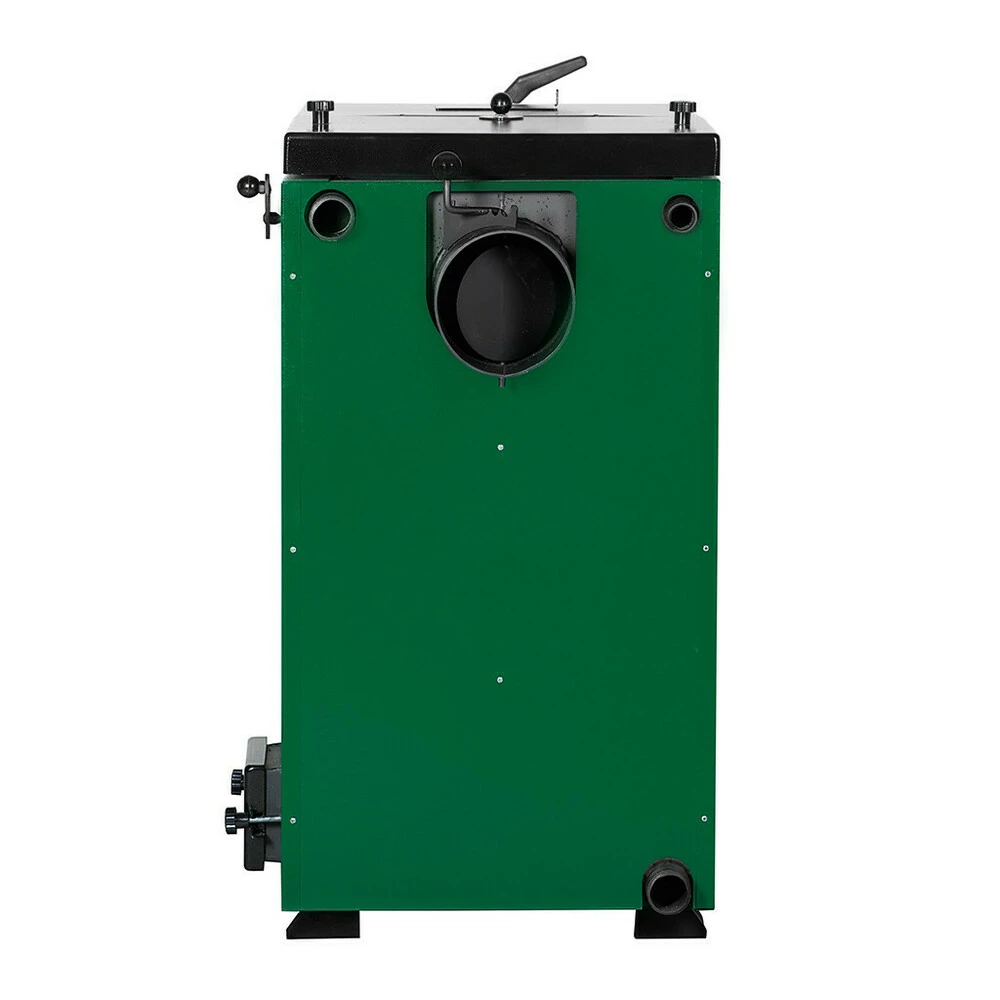 Технологические выходы с тыльной части котла и круглый газоход на задней панели, также патрубок для слива воды и установки клапана сброса давления.