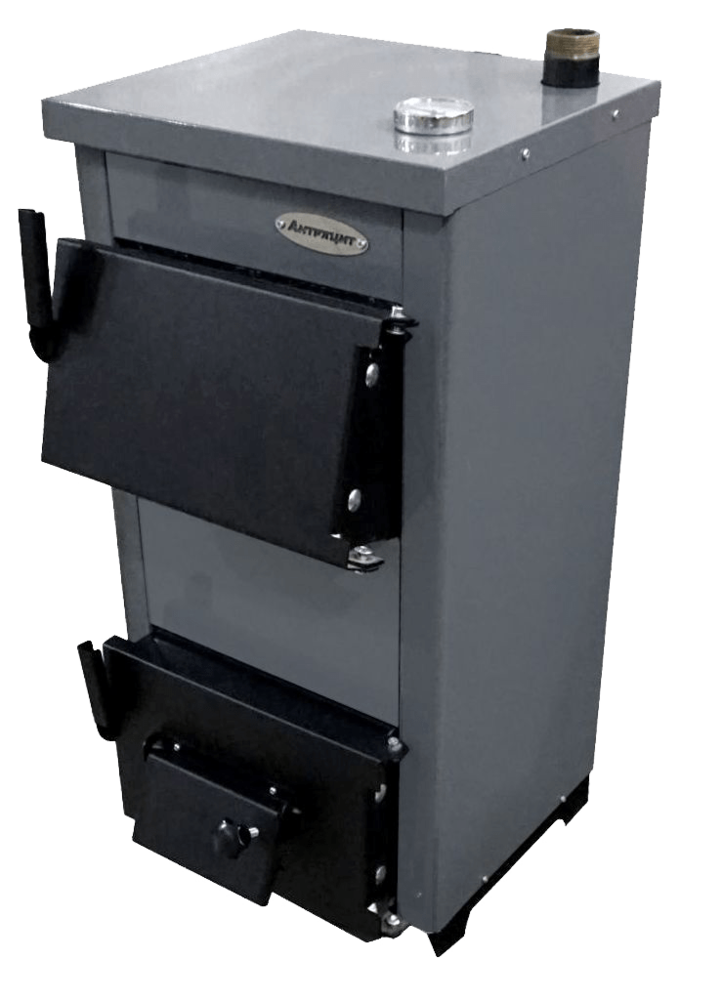 Котлы на твердом топливе Альтаир маркированные АТ-12 ст, АТ-15 ст, АТ-18 ст имеют теплообменник, который изготавливают из котловой стали толщиной 3 миллиметра. Чтоб увеличить производительность и эффективность оборудования, как альтернативу колосникам, используют цельнотянутые трубы из стали или охлаждаемые колосники. Такое отопительное оборудование работает за счет сгорания твердого топлива – сухих дров и угля. Используют его в зависимости от модели 12ст, 15ст, 18 ст соответственно для обогрева помещений общей площадью 120 м.кв, 150 м.кв, 180 м.кв. Данное оборудование способно работать в зимний период, если температура в пределах – 5 С, на одной загрузке топлива от 5 до 8 часов.
