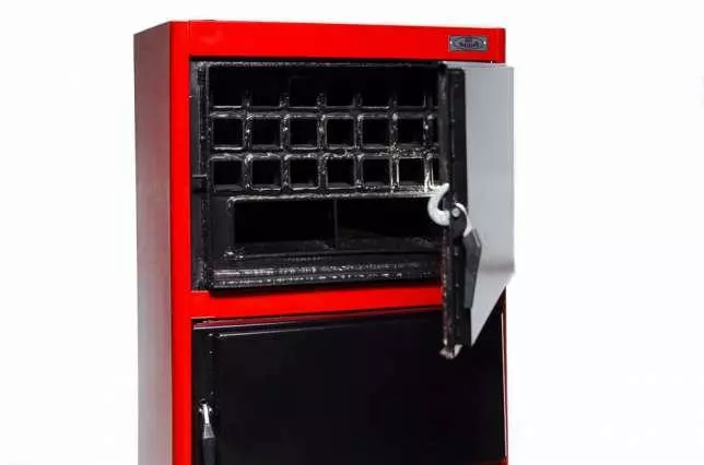 Корпус имеет порошковую покраску. Сбоку отопительного котла расположено гнездо для подключения вентилятора (приобретается дополнительно).