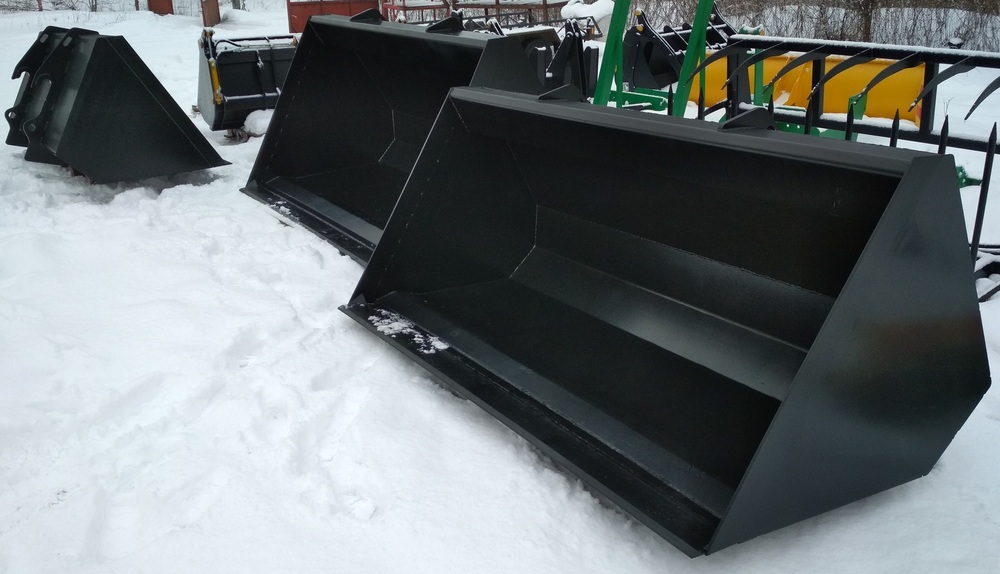 Ми можемо запропонувати Вам 10 видів ковшів, які відрізняються розмірами (шириною, місткістю) і призначенням. Однією з головних характеристик є ширина ковша. Наші ковші мають ширину від 1,8 м до 2,4 м (стандарт – 1,8 м, 2,2 м, 2,4 м). Також при виборі ковша дуже важливо оцінити його місткість. Ми маємо ковші місткістю від 0,6 м3 до 2,7 м3. Також ковші мають відміну за базовим навантажувачем – ми маємо варіанти MANITOU, JCB, Dieci, Bobсat, NewHolland, Claas Scorpion, Merlo, Faresin, Caterpillar та інших.