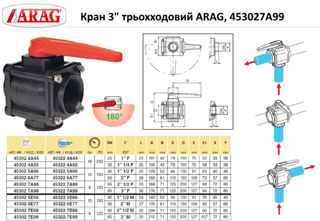 Кран 3" трьохходовий ARAG, 453027A99