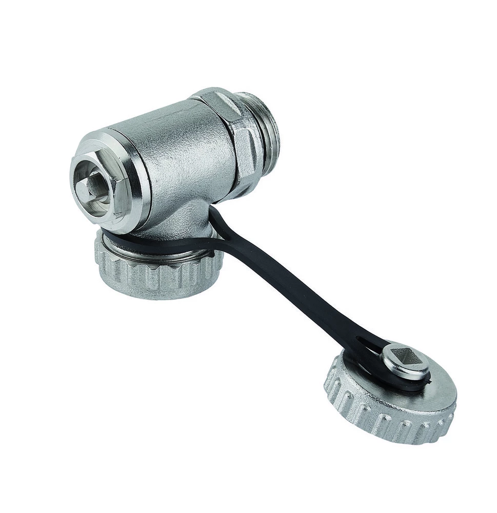 Кран для спуска воды из радиатора с крышкой, никелированный.