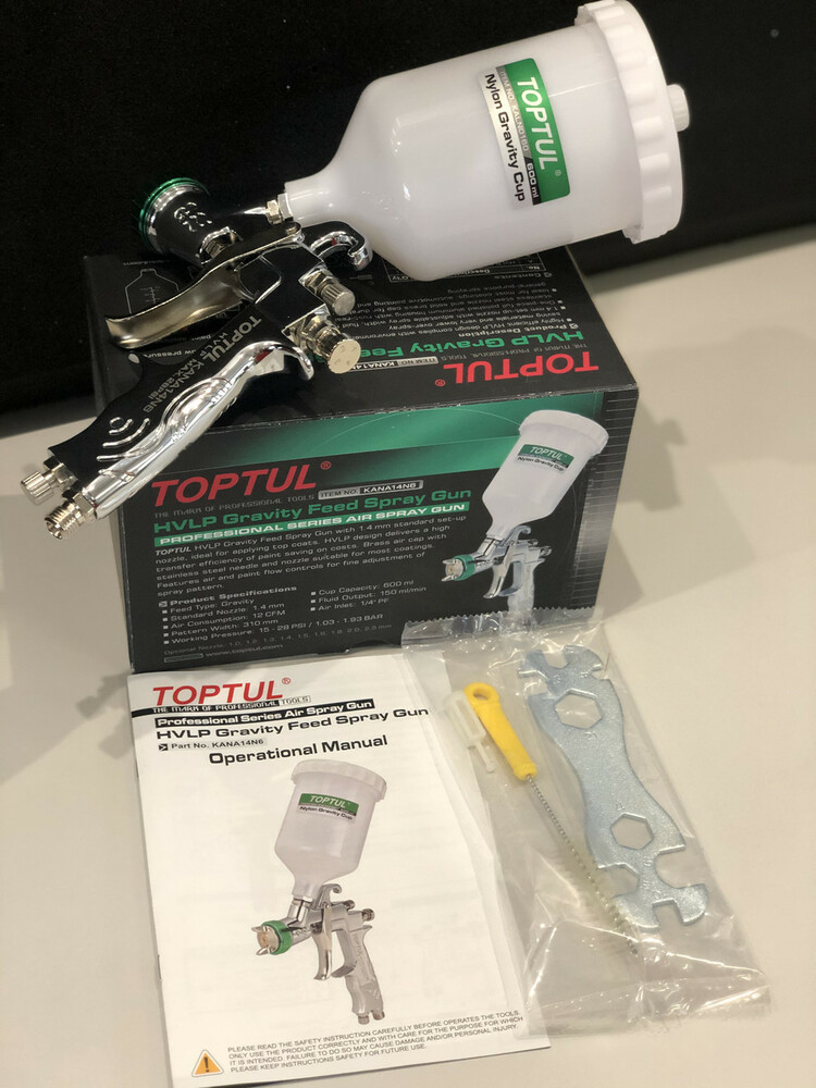 Краскопульт пневматический тип HVLP верхний нейлоновый бачок, диаметр форсунки-1,4мм TOPTUL KANA14N6
