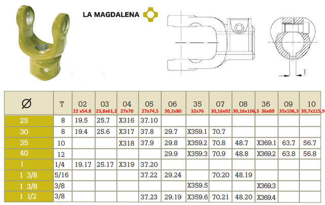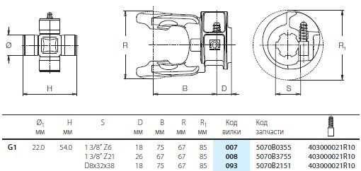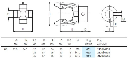 Шлицевые вилки карданнго вала под крестовину 22х54 мм