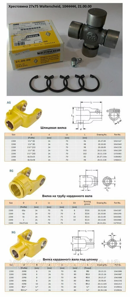 Профили труб карданного вала применяемые с крестовиной 24х61