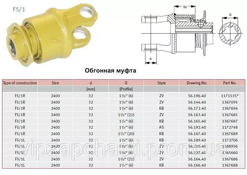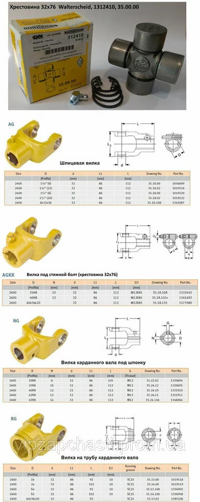 Шлицевые вилки карданнго вала под крестовину 32х76 мм