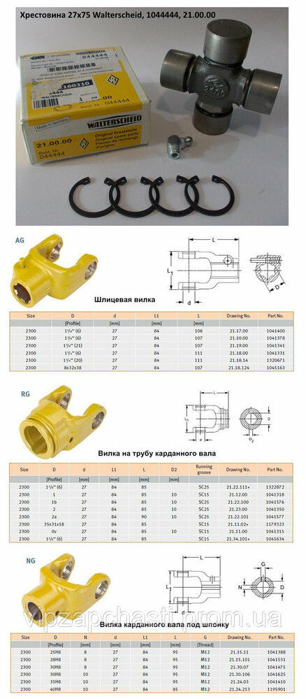 Шлицевые вилки карданнго вала под крестовину 27х75 мм