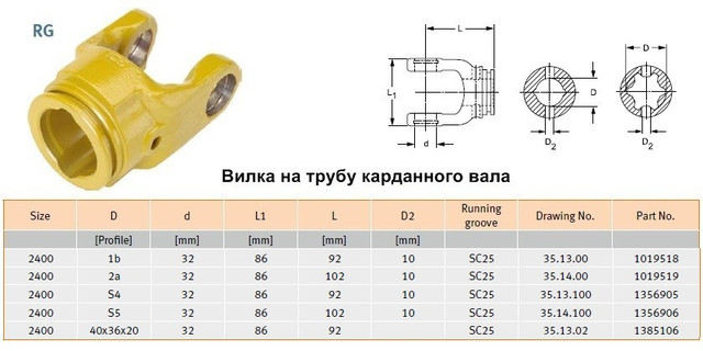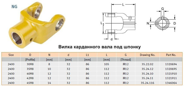 Шлицевые вилки карданнго вала под крестовину 32х76 мм