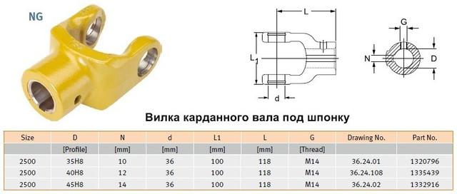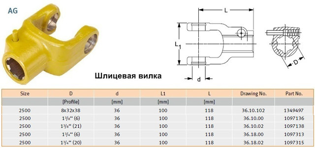 Шлицевые вилки карданнго вала под крестовину 36х89 мм