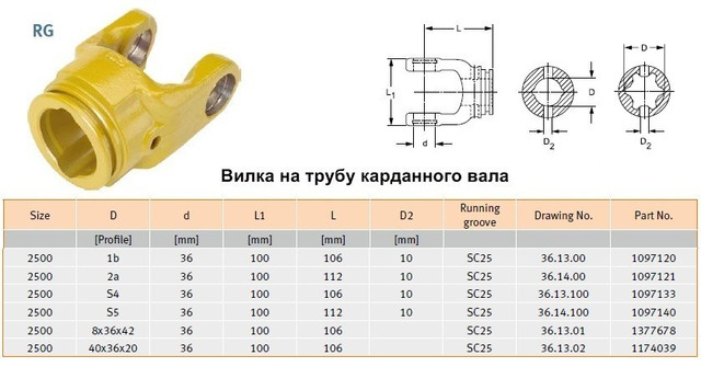 Профили труб карданного вала применяемые с крестовиной 36х89 мм